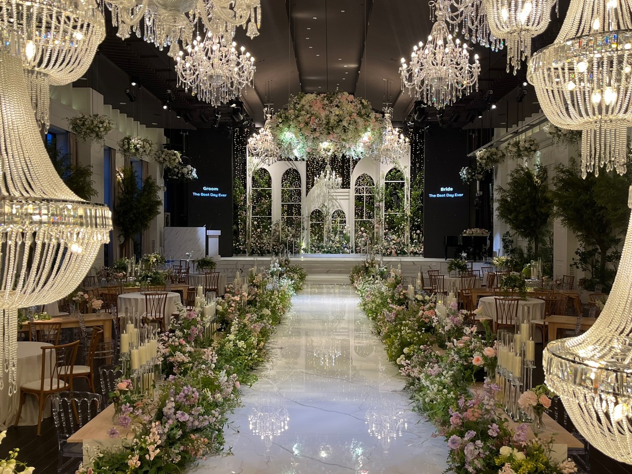 세련된 공간 디자인과 고급스럽게 완성된 디테일, 그리고 감각적인 웨딩 연출이 어우러져